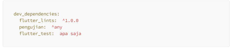 1. Perbarui pubspec.yaml Anda untuk menyertakan dependensi linting dan dependensi pengujian:
