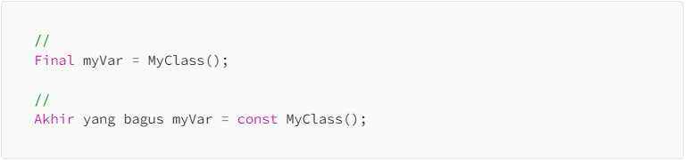 • Deskripsi: Lebih suka menggunakan konstruktor const untuk membuat instance objek.