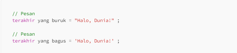 • Deskripsi: Lebih suka menggunakan tanda kutip tunggal untuk literal string.