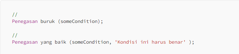 • Deskripsi: Lebih suka menggunakan pernyataan dengan pesan untuk pelaporan kesalahan yang lebih baik.