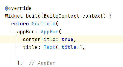Lalu, ketika widget di klik maka pada AppBar akan tampil title dari widget yang di klik, karena pada App Bar kita sudah mengimplemantasikan widget parameter title yang kita deklarasikan pada _buildItem
