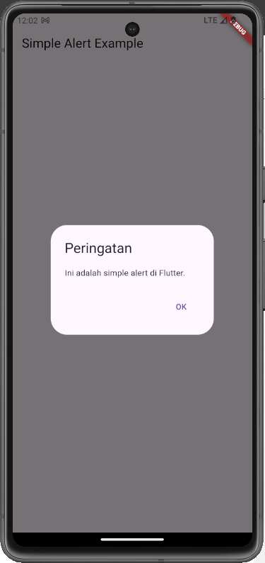 Untuk membuat simple alert, kita akan menggunakan widget AlertDialog yang menampilkan dialog dengan judul, isi, dan tombol tindakan.