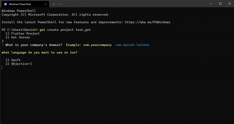 Membuat project dengan Get CLI